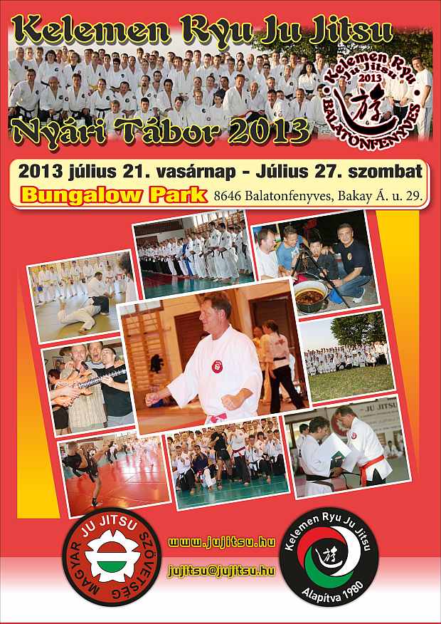Szövetségünk legnagyobb rendezvénye minden évben a Nyári Tábor. Szakmai ésközösségi szempontból is kiemelt jelentőségű. Idén 28. alkalommal rendezzükmeg. Időpont: 2013 július 21. – 27. A már bevált helyszín: BungalowPark, Balatonfenyves, közvetlenül a tó partján, a Tábor összekapcsolhatóa nyaralással is. Természetesen a napi négy edzés mellett lesznek dan éskyu- vizsgák is, fakultatív edzések, bemutató, szalonnasütés és […]