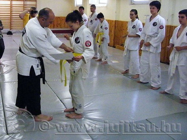 sárga csík (6. kyu) és nyolcan sárga öv (5. kyu) fokozatra. A vizsga utáni